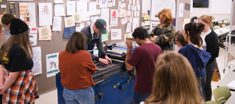 The PrintBay is an interdisciplinary center for the experiential study of movable-type printing. The space offers participants a first-hand look at the historic letterpress process—transferring ink onto paper with raised metal or wood type. Rather than re-enact the past, our goal is to revitalize it, with the help of modern tools. Using CNC mills, laser cutters, additive manufacturing, and photomechanical processes, we harness the precision and efficiency of the digital to expand appreciation for the warmth and beauty of the analog. In addition to posters, books, flyers, and ephemera; we produce the conditions for playful collaboration among the humanities, fine arts, and STEM fields.